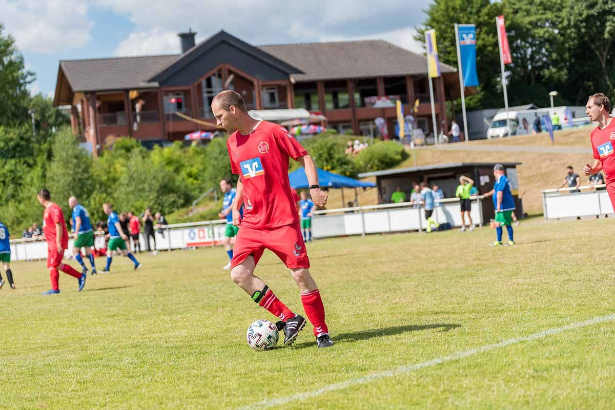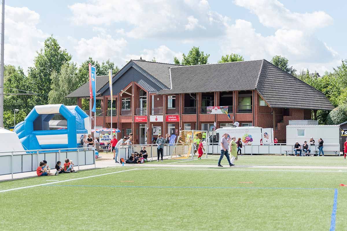 Herzstück der Sportanlage unseres Vereins sind drei Etagen, die verschiedenste Möglichkeiten bieten. Oben erwartet dich der Kunstrasen in Groß und Klein sowie unser Vereinsheim. In der Mitte findest du unser Stadion mit Tribüne, einer riesigen Anzeigetafel und das Beachvolleyballfeld. Unten ist ein weiterer Platz für unser Training.