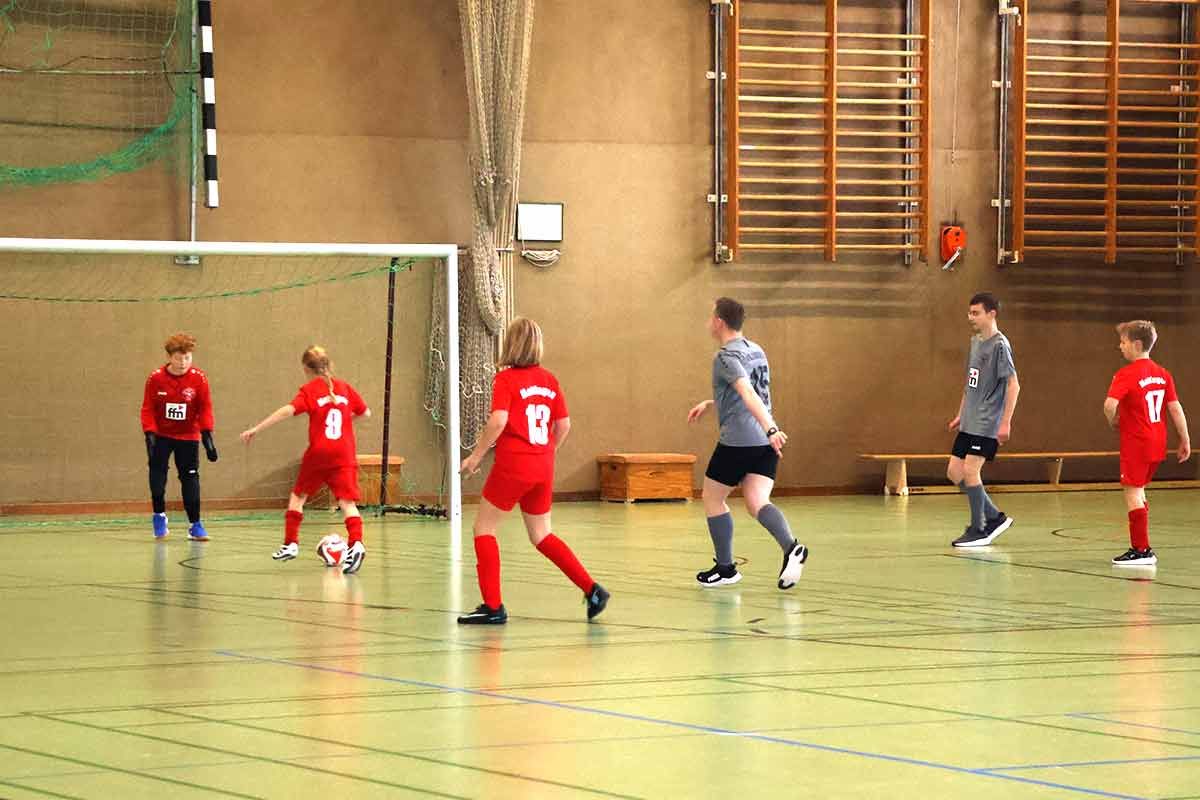 Wie bei unseren Turnieren üblich, standen nicht Ergebnisse im Fokus, sondern echte Teilhabe. Es gab keine Platzierungen, gespielt wurde jeder gegen jeden – mit viel Zeit pro Partie: ganze 15 Minuten. Dadurch konnte jedes Team wirklich alle Spielerinnen und Spieler aufs Feld schicken. Genau das machte die Atmosphäre so besonders und löste viele strahlende Momente aus.