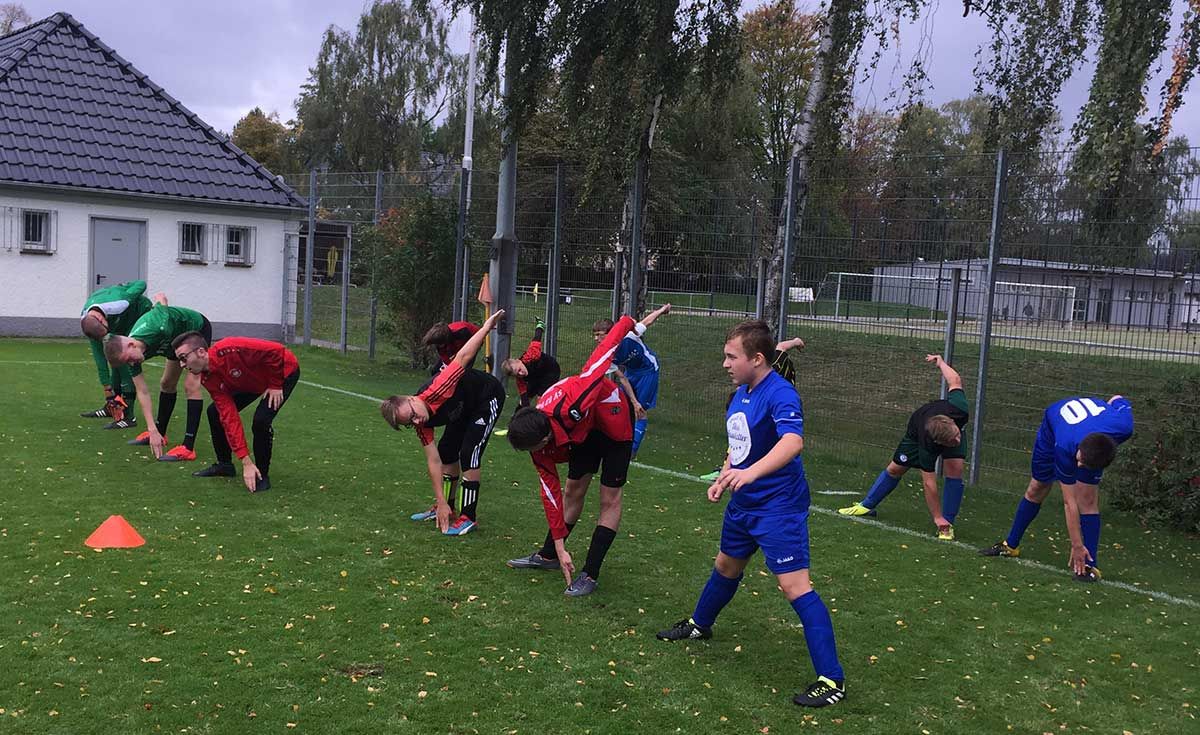 Anschließend ging es auf den Platz zum Training. Trainer Willy Risse versammelte alle Spieler und leitete die Trainingseinheit.