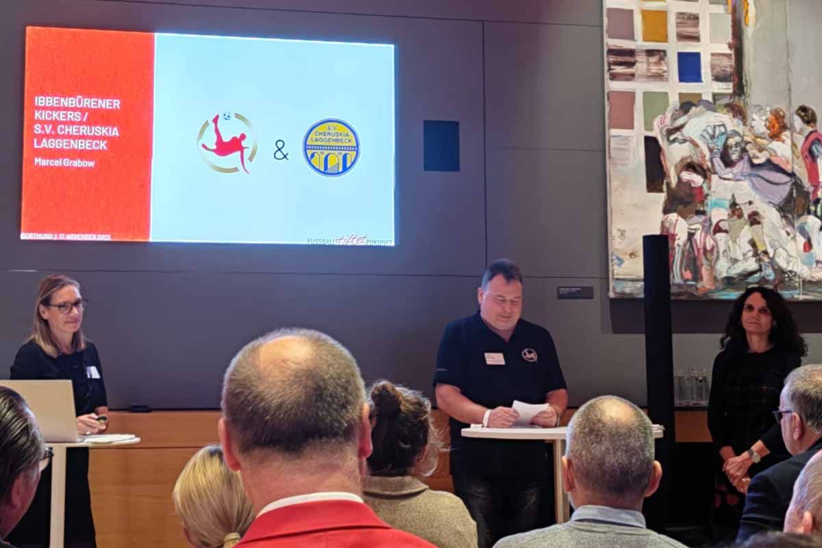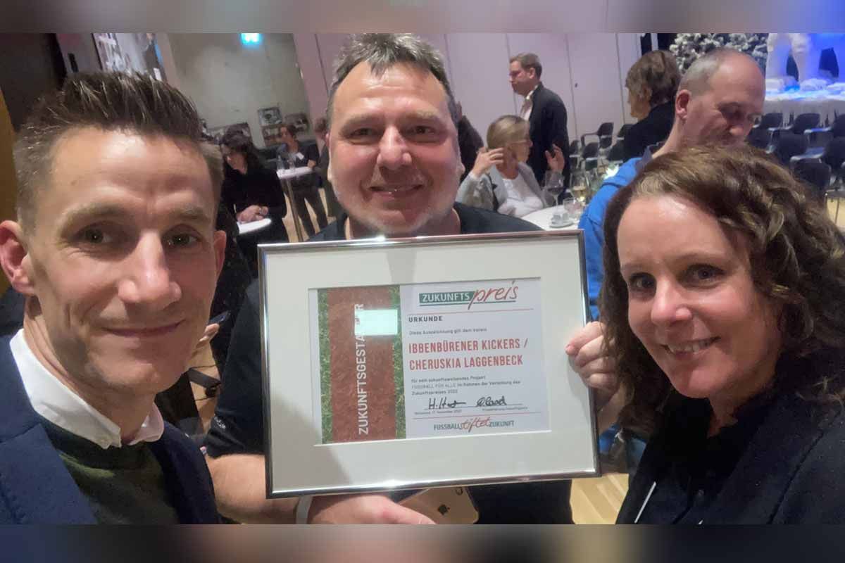 Was für ein aufregender Abend für die Ibbenbürener Kickers! Wir wurden vom DFB-Stiftungen-Netzwerk "Fußball stiftet Zukunft" mit dem Zukunftspreis 2022 ausgezeichnet. Die Auszeichnungen sind jeweils mit 5000 Euro dotiert und wurden an fünf Fußballvereine verliehen, die durch ihr innovatives Engagement lokale soziale und ökologische Lösungen ermöglicht haben.