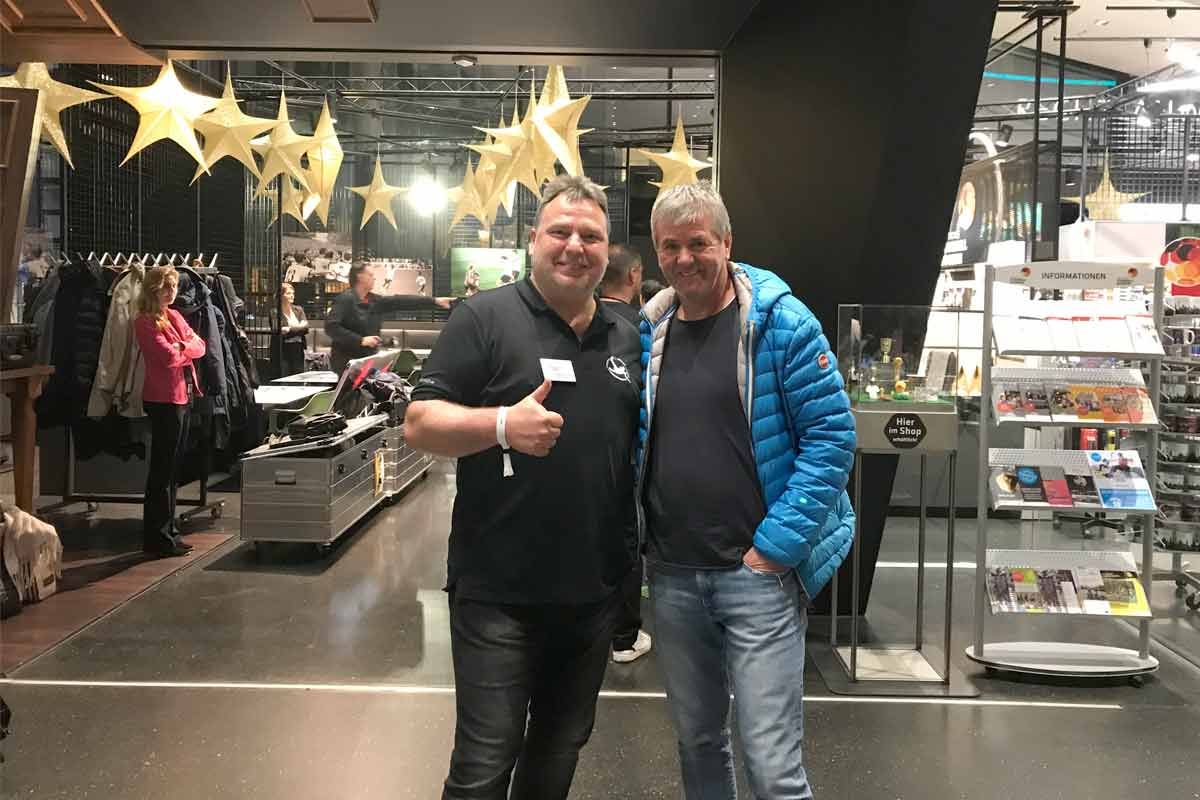 Die Aufregung stieg noch einmal an, als wir bei der Abendveranstaltung unsere Projekte vor einem fachkundigen Publikum präsentieren durften. Zwischendurch erhielten wir Videogrüße von Größen wie Stefan Kießling, Ralf Rangnick und Manuel Neuer. Leider konnten die Jurymitglieder nicht persönlich an der Veranstaltung teilnehmen, aber sie ließen es sich nicht nehmen, uns ihren Dank und ihre Anerkennung auszusprechen. Nach dem offiziellen Teil hatten wir in gemütlicher Atmosphäre Gelegenheit, uns mit allen Anwesenden auszutauschen, darunter Persönlichkeiten wie Friedhelm Funkel und Marcel Jansen.