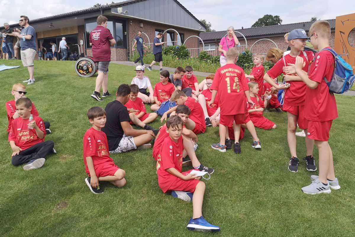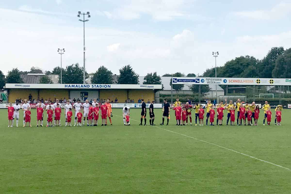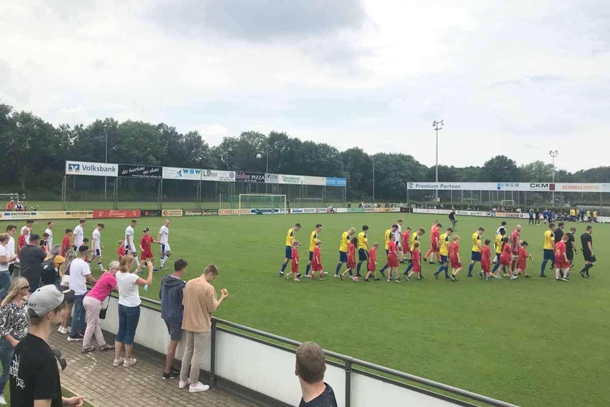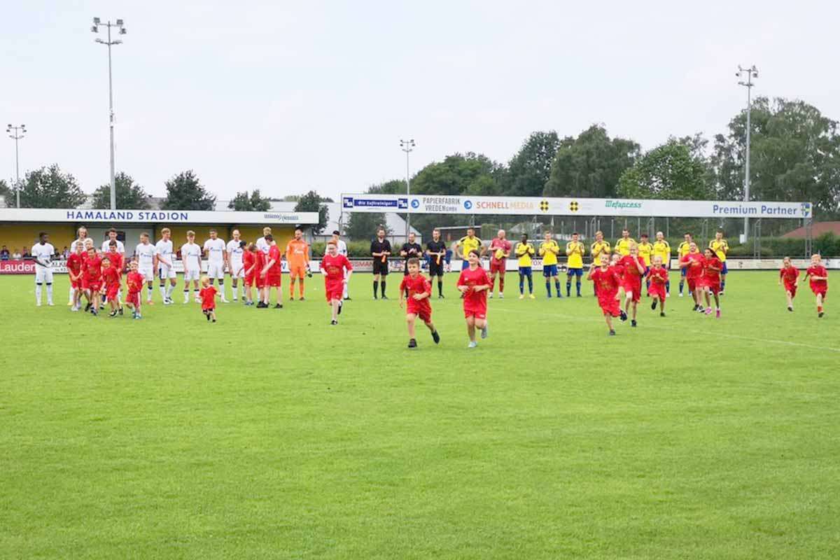 Kurz darauf erhielten wir die Nachricht, dass unsere Kickers die Einlaufkinder stellen durften. Schnell hatten wir 22 Einlaufkinder organisiert und fuhren mit etwa 60 Spieler*innen, Eltern und Verwandten nach Vreden.