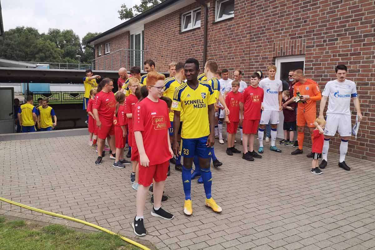 Um 13:45 Uhr stieg die Nervosität, denn das Einlaufen mit den coolen Jungs von Schalke II und Vreden stand bevor. Selbst unser jüngster Spieler mit zwei Jahren war dabei!