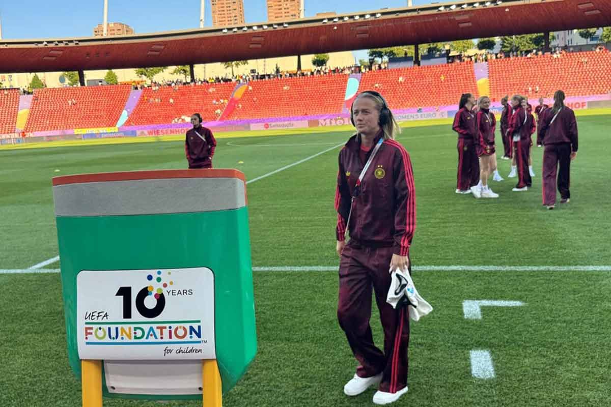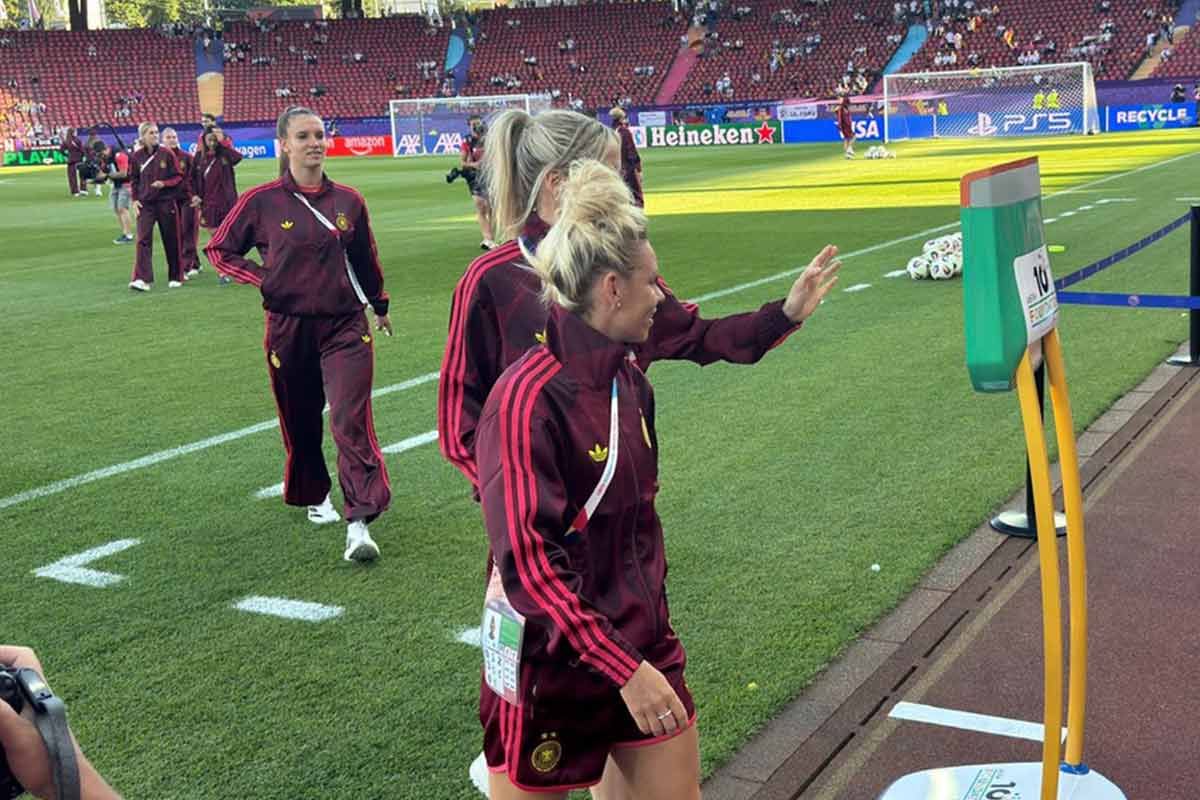 Dank einer großartigen Aktion der UEFA und den DFB-Stiftungen konnten unsere beiden Spielerinnen am 12. Juli per Awabot-Roboter live ins Stadion nach Zürich zugeschaltet werden. Und das war nicht einfach irgendein Livestream: Über den Bildschirm-Roboter durften unsere Mädels dorthin, wo sonst kaum jemand hinkommt – in die Umkleidekabine der Nationalspielerinnen, an den Spielfeldrand, in die Mixed Zone. Ein ganz besonderer Blick hinter die Kulissen des Frauenfußballs – und das direkt von ihrem Wohnzimmer aus.