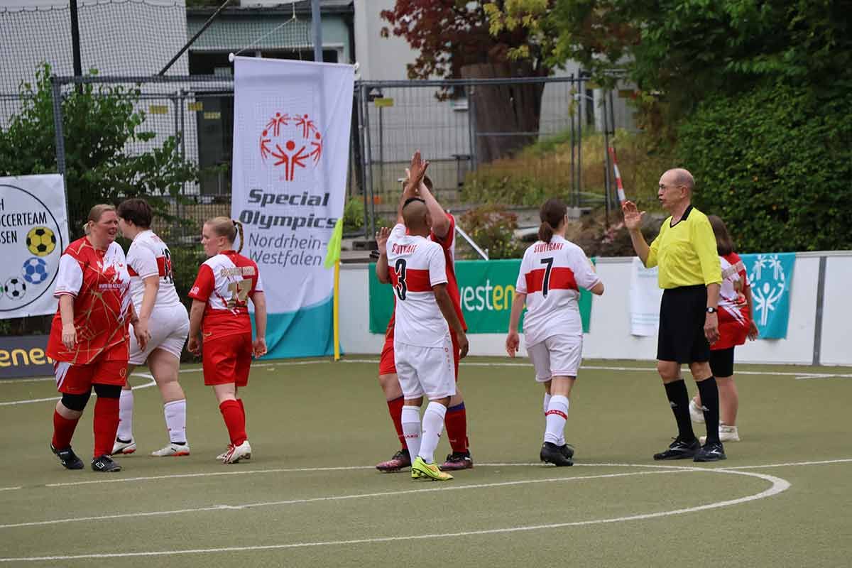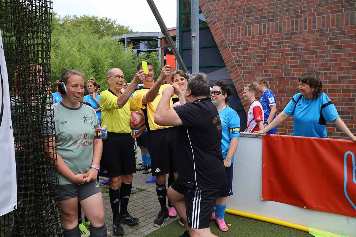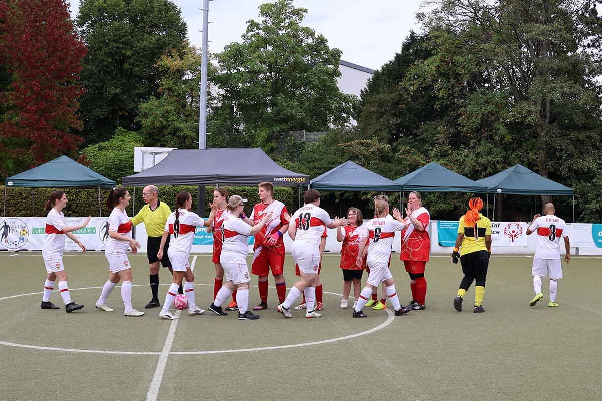 Neben den Kickers waren Teams aus ganz Deutschland angereist: Frau am Ball Berlin e.V., VfB Stuttgart 1893 e.V., SV Darmstadt 98 e.V., das FSH Soccerteam Essen und die Schule in der Widum. Bei strahlendem Sonnenschein, 26 Grad und einem tollen Rahmenprogramm – von Fußball-Dart über Glücksrad bis hin zu Bratwurst und Kuchen – wurde schnell klar: Hier stand das Miteinander im Mittelpunkt.