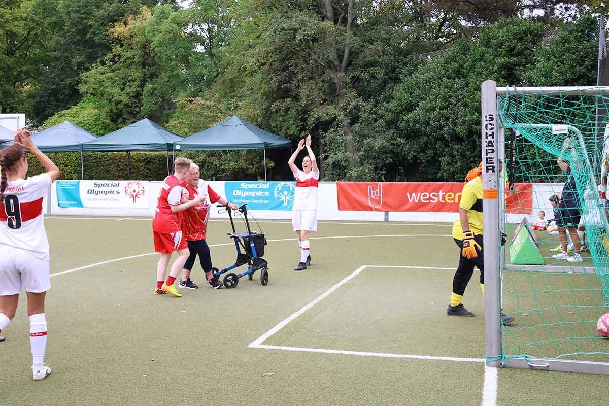 Auch neben dem Platz wurde fleißig gearbeitet: Beim Special Olympics Netzwerktreffen tauschten sich Trainer und Verantwortliche über die Zukunft des Frauenfußballs aus. Unsere Trainer Inga und Marcel Grabow brachten sich aktiv ein – und kündigten gleich ein eigenes inklusives Frauenfußballturnier im Frühjahr in Ibbenbüren an. Schon jetzt haben sich Vereine wie der VfB Stuttgart, der SV Darmstadt 98 und das Franz Sales Haus ihre Teilnahme zugesichert. Ein starkes Signal für den inklusiven Mädchen- und Frauenfußball!