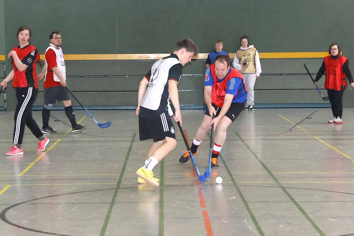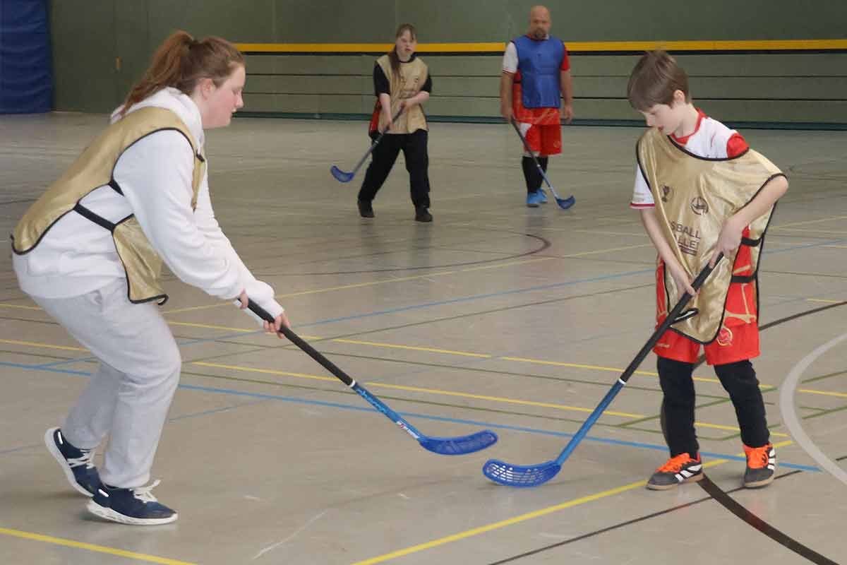 Für das Training teilten wir alle Spielerinnen und Spieler in vier gemischte Mannschaften ein – und dann ging es los! In der ersten Stunde sorgten spannende Hockey-Matches für jede Menge Action und Spaß. Nach einer kurzen Trinkpause wurde der Hockeyschläger gegen den Fußball eingetauscht.