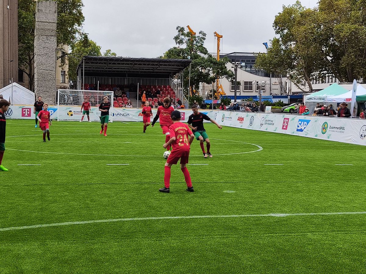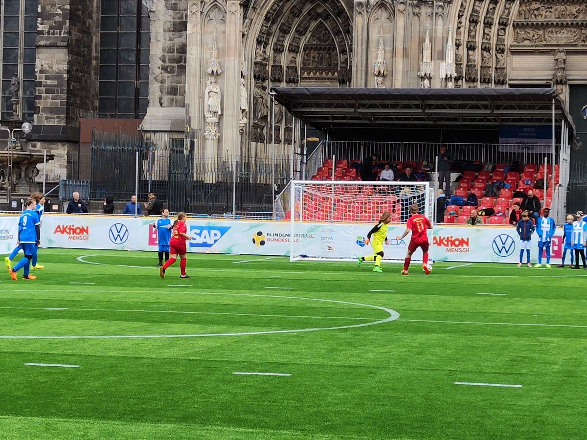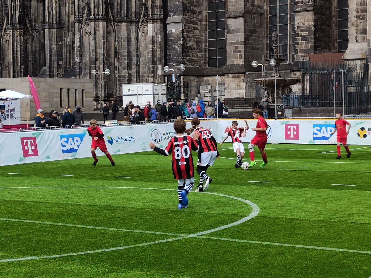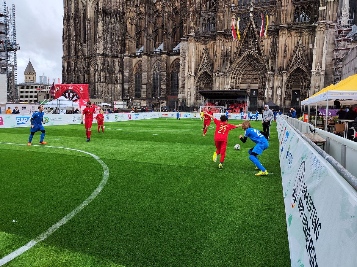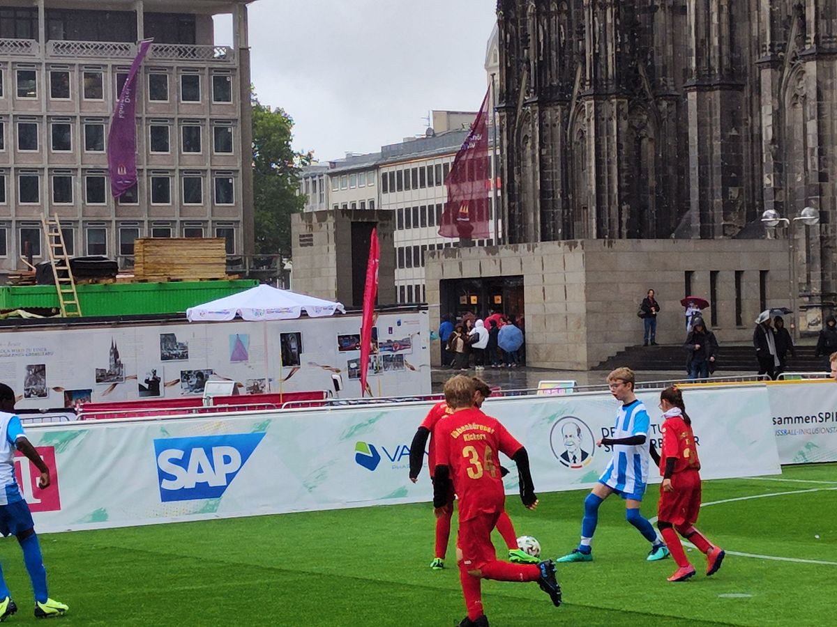 Die Kulisse mit dem Spielfeld direkt vor dem Kölner Dom war beeindruckend. Überdachte Tribünen hinter den Toren luden zum Verweilen ein. Der 1. FC Köln und der Fußball-Verband Mittelrhein gestalteten rund um den Platz ein buntes Rahmenprogramm, das den Besuchern keine Wünsche offenließ. Passanten aus der Innenstadt verweilten, genossen Kaffee und Kuchen und feuerten die ehrgeizigen Kinder lautstark an.