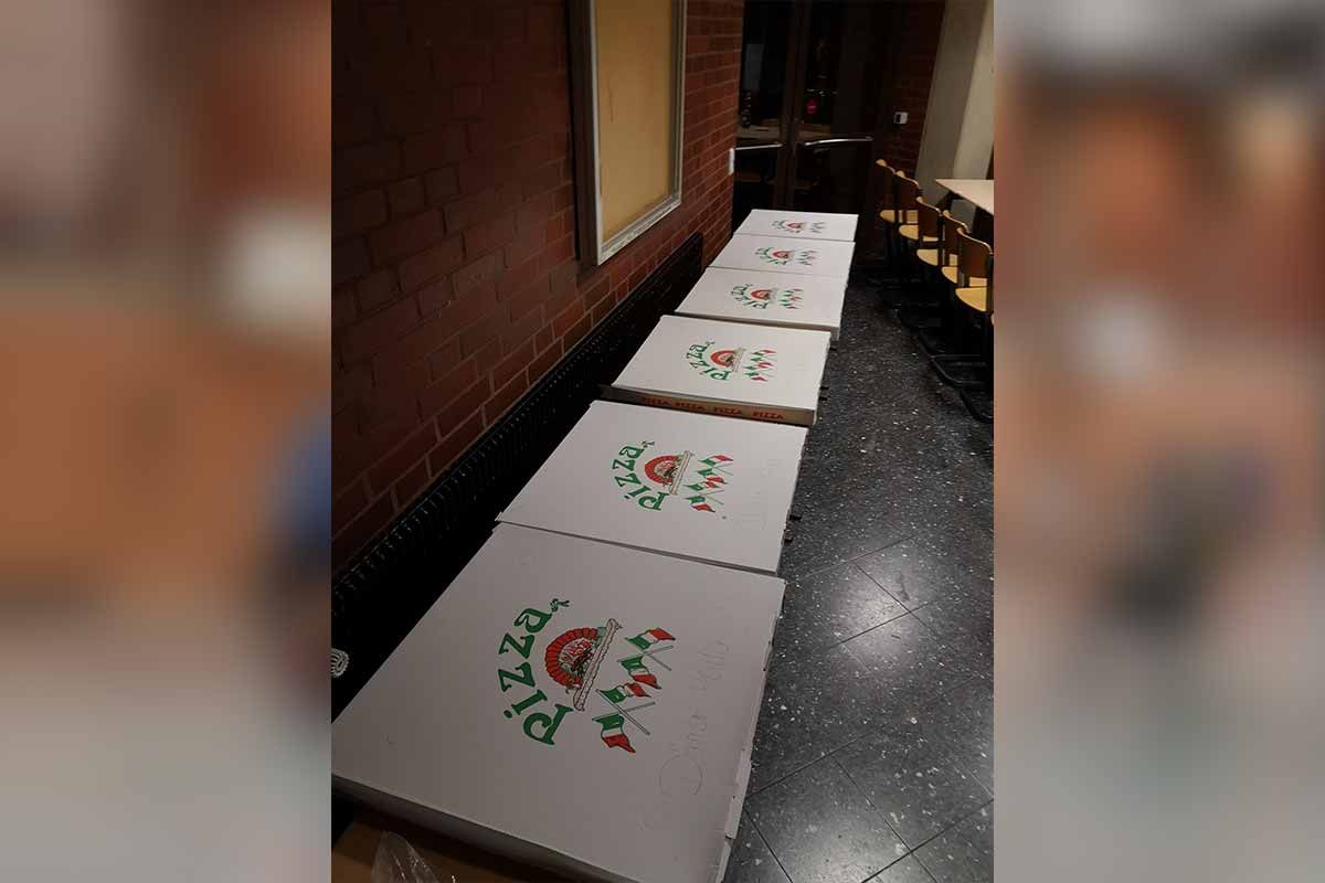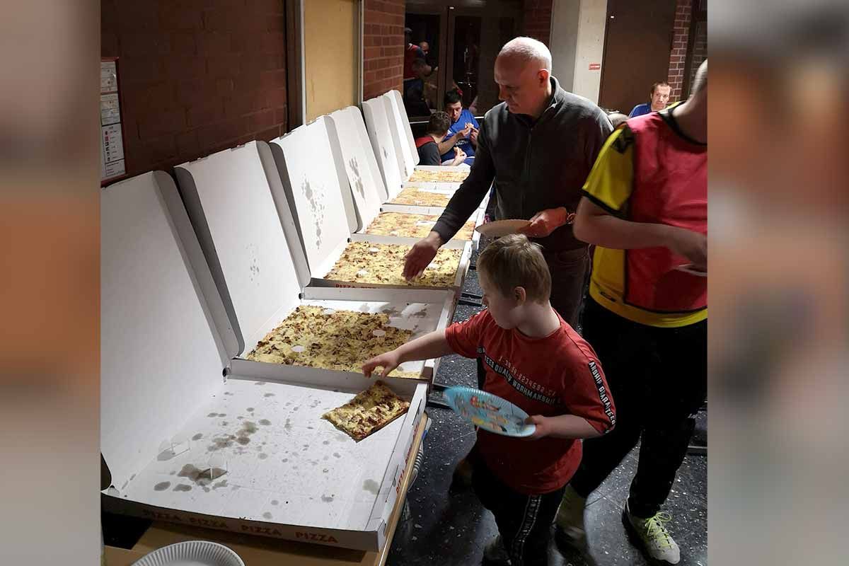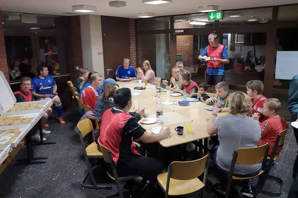Nach dem großen Fußballturnier - wir hatten die teilnehmenden Spieler und Eltern in 6 Teams (Juventus Turin, Real Madrid, FC Bayern, FC Barcelona, FC Liverpool und Paris St. Germain) eingeteilt, um im Modus jeder gegen jeden den Champions-League-Sieger auszuspielen - gab es dann leckere Party-Pizza für alle.