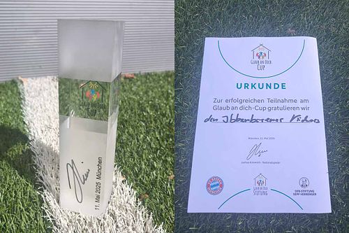 Am Ende wurden alle Teams gefeiert. Es gab Pokale für jede Mannschaft und eine Sporttasche mit Ball, Tasse und Trinkflasche vom FC Bayern für jeden einzelnen Spieler. Das Abschlussfoto mit Maskottchen Berni und Lina Kimmich rundete den Tag perfekt ab – Joshua war inzwischen zur Meisterfeier nach Ibiza geflogen, aber seine Herzlichkeit und Begeisterung blieben auf dem Platz.