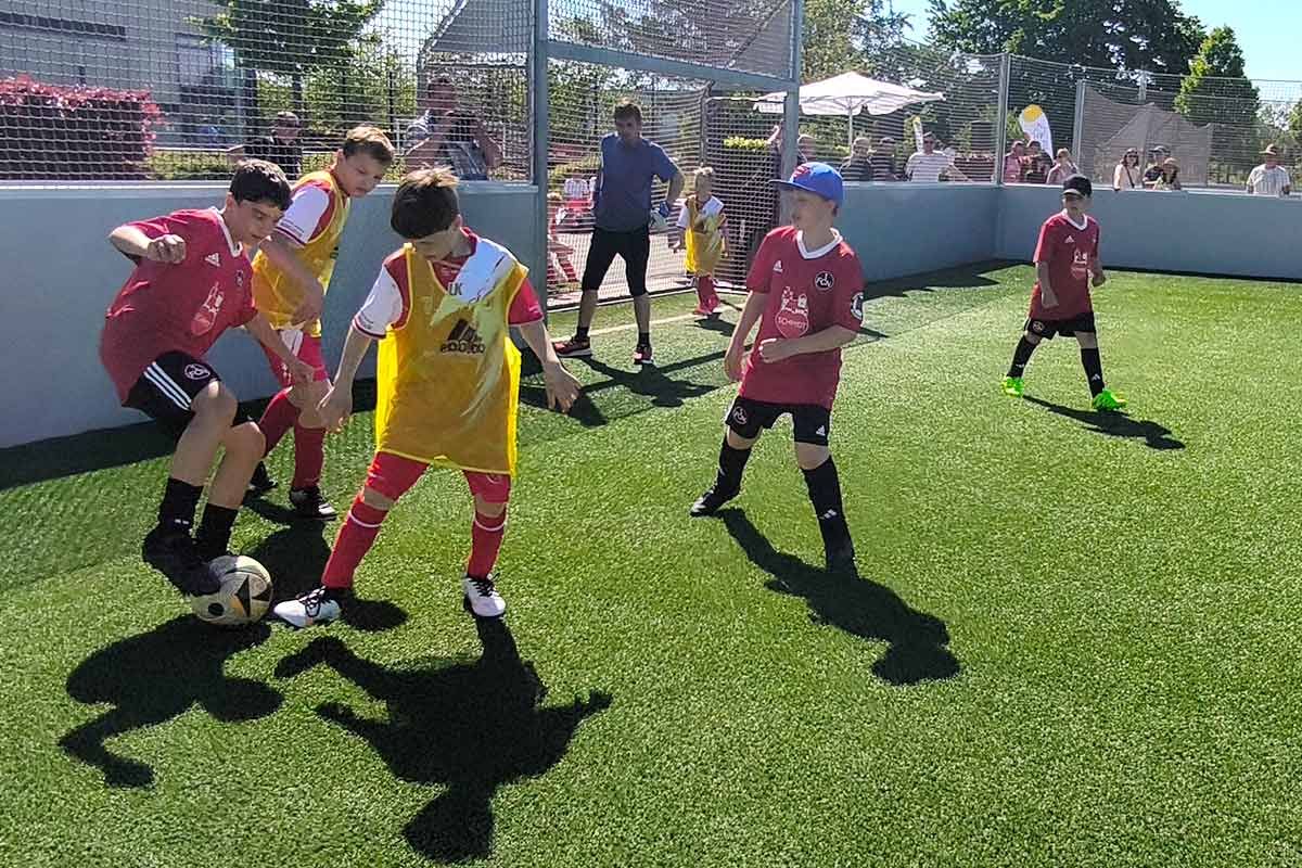 Dann ging’s auf den Platz: Acht Teams aus ganz Deutschland traten im Fünf-gegen-Fünf-Modus gegeneinander an: darunter Grün-Weiß Gröbenzell, FC Español München, Spvgg Etzelskirchen, 1. FC Gröbenzell, FC Kempten, PTSV Jahn Freiburg, der 1. FC Nürnberg – und wir, die Ibbenbürener Kickers.