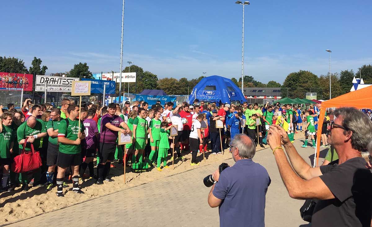 Nach der herzlichen Begrüßung mit unseren Freunden aus Hörstel stellten wir uns gemeinsam mit allen Teams für den Einlauf auf. Gastgeber Dietmar Sonius von Blau Weiss Aasee persönlich begrüßte jede Mannschaft mit großem Applaus aller Zuschauer.