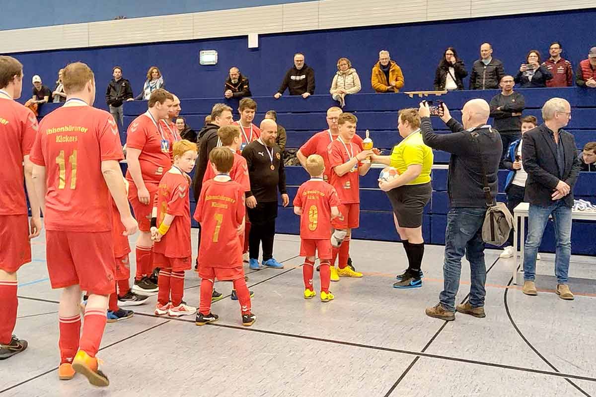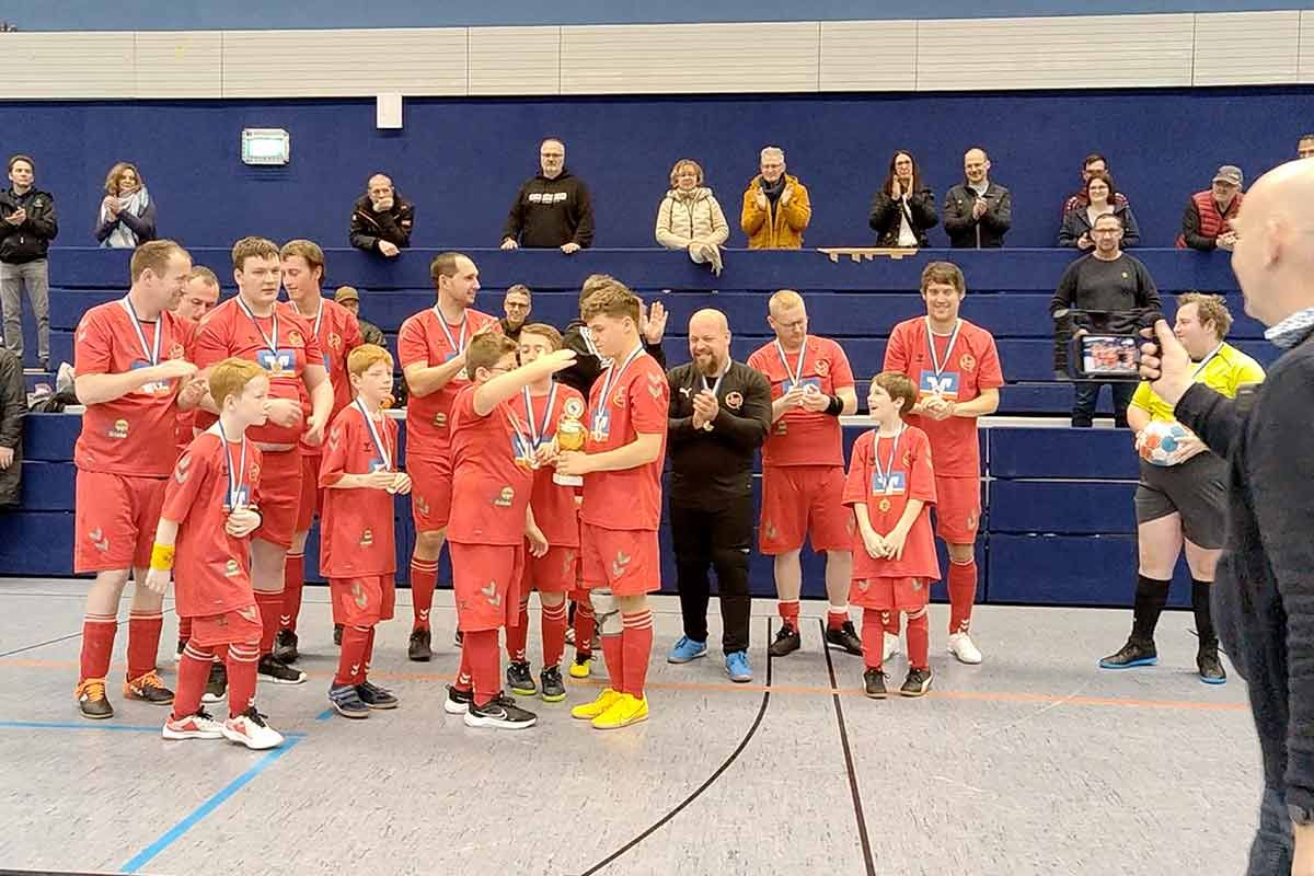 Unsere jüngeren Spieler der U16 belegten am Ende einen guten dritten Platz, und auch unsere älteren Spieler aus der Ü16 hatten einen großartigen Tag. Sie zeigten sich äußerst spielfreudig und präsentierten erneut ihren eingespielten Kombinationsfußball. Besonders beeindruckend war das sehenswerte Fallrückziehertor von unserem Nico – solche Tore sind auf Inklusionsturnieren sehr selten zu sehen und sorgten für einen begeisterten Aufschrei und lautstarken Jubel in der Halle.