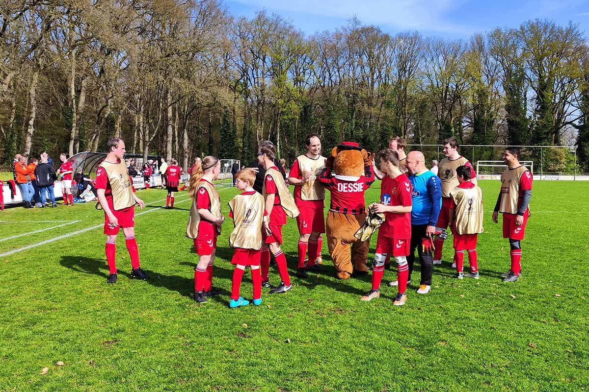 Wir hatten die Ehre, am letzten Samstag an einem inspirierenden Fußballturnier in Nijverdal in den Niederlanden teilzunehmen. Diese spannende Begegnung brachte die Inklusionsteams des vv DES Nijverdal, unsere eigene Mannschaft und Excelsior '31 aus Rijssen zusammen. Bei strahlendem Sonnenschein und angenehmen Temperaturen waren Spielerinnen und Spieler im Alter von 8 bis 40 Jahren voller Begeisterung auf dem Spielfeld.