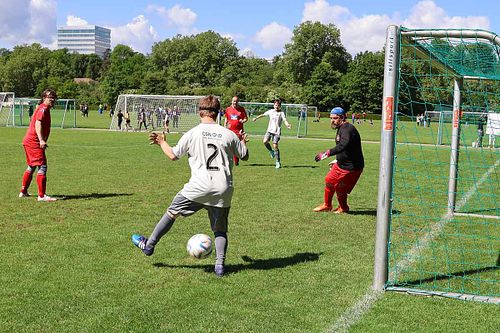 Nach dem Check-In begann das Turnier mit der offiziellen Begrüßung und der Einteilung der Mannschaften. Wir traten mit einem gemischten Team (Kinder, Frauen, Männer) und einem Erwachsenen-Team an. Unser gemischtes Team spielte gegen Mannschaften wie Insieme Starkickers, FC Basel Dreamteam, SRD Delemont und FC Nordstern aus der Schweiz sowie Germania Zündorf und Viktoria Köln aus Deutschland. Das Erwachsenen-Team spielte gegen SRD Delemont, FC Basel Dreamteam und Insieme Starkicker aus der Schweiz, Huningue aus Frankreich sowie Hannover 96, TSV 1860 München und Germania Zündorf aus Deutschland.