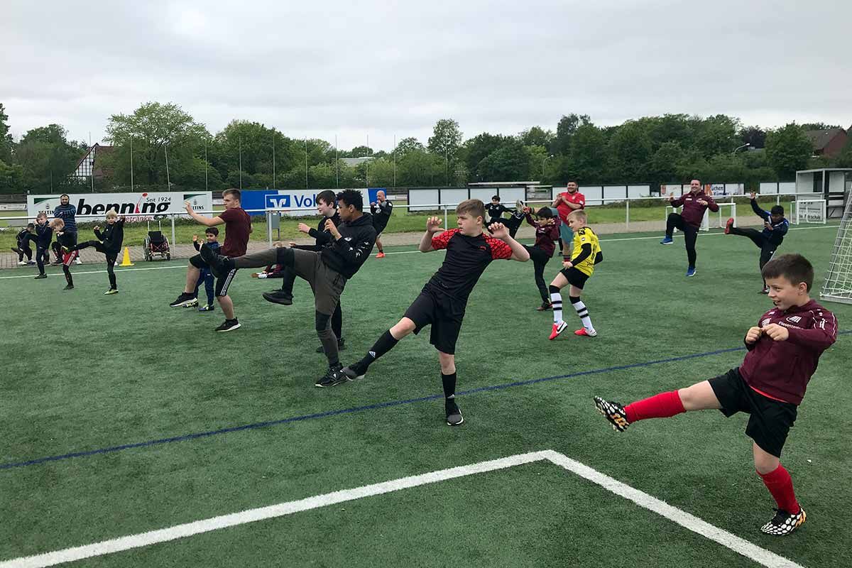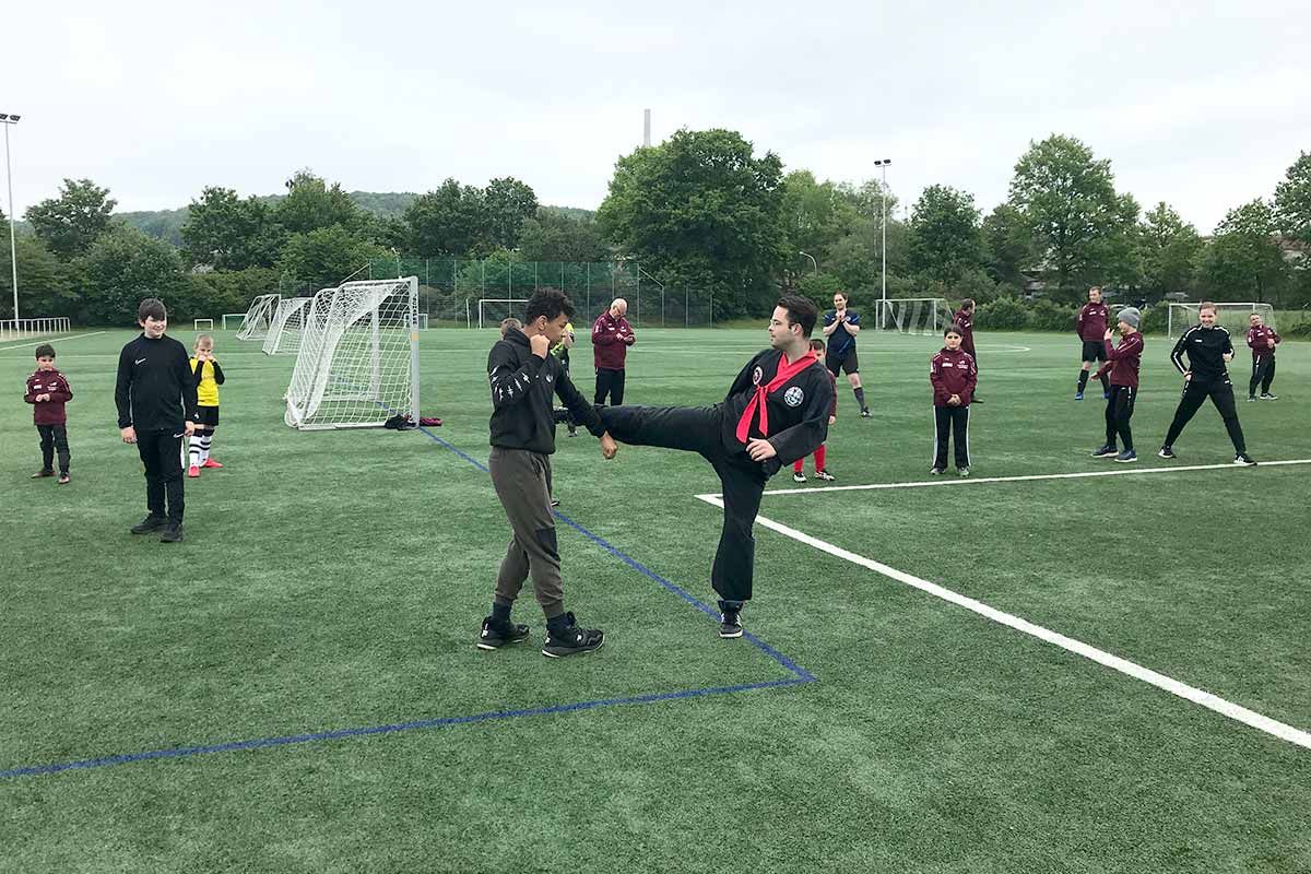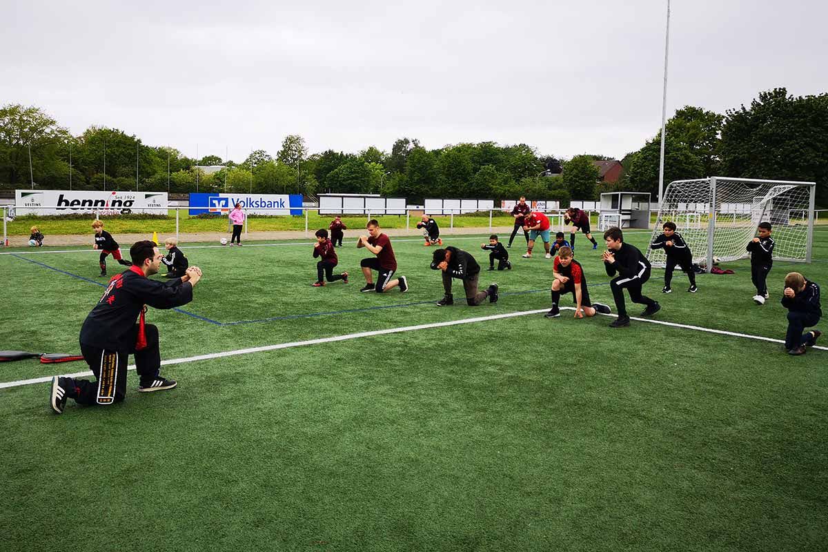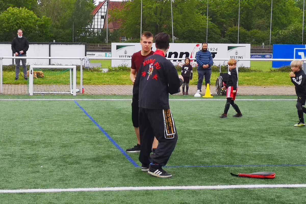 Am 29. Mai 2021 überraschte uns Kung-Fu Meister Dominic Fischer, Schulleiter der Sportakademie Dr. Lee in Rheine, mit seinem Besuch. Er führte ein angepasstes Kung-Fu-Training mit allen anwesenden Ibbenbürener Kickers durch.