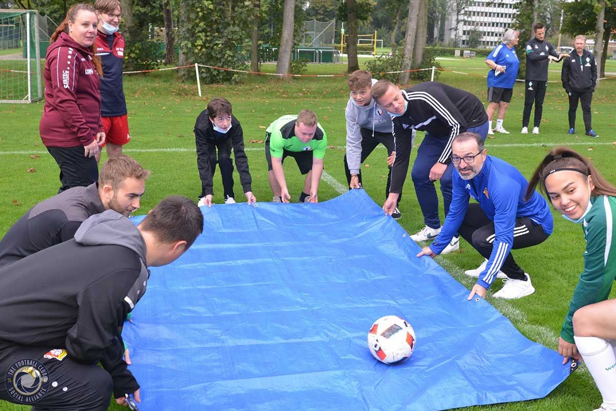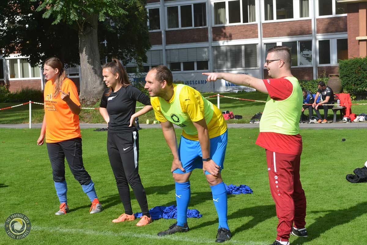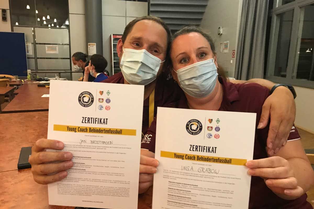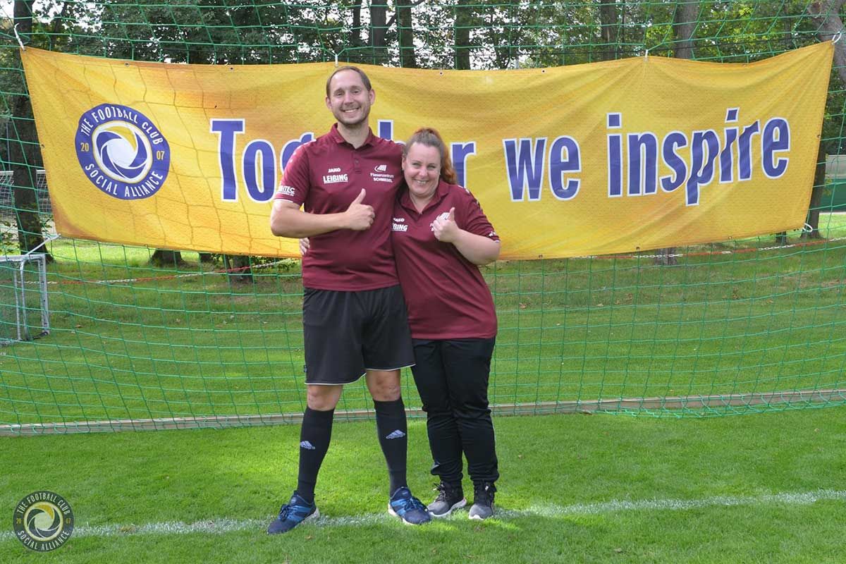 Vom 19. bis 25. September nahmen Inga und Jan von den Ibbenbürener Kickers an der Tandem Young Coach-Ausbildung der Football Club Social Alliance teil, die an der Sportschule Wedau stattfand. Die Besonderheit dieses Ausbildungsprogramms besteht darin, dass jeweils eine Teilnehmerin mit und einer ohne Beeinträchtigung ein Tandem bilden und gemeinsam an der Ausbildung teilnehmen. Diese Schulung wird von der "Football Club Social Alliance," einer Allianz europäischer Profifußballclubs, organisiert und von Expertinnen im Handicap-Fußball geleitet.
