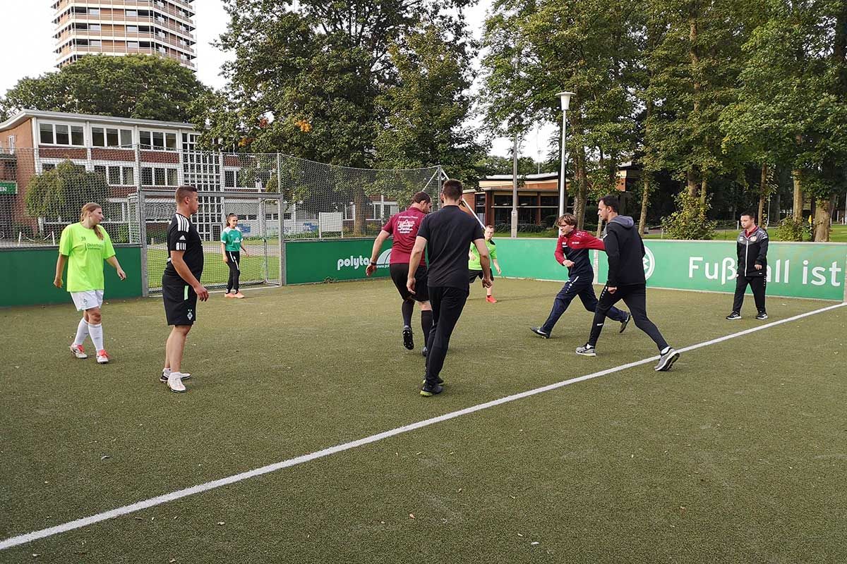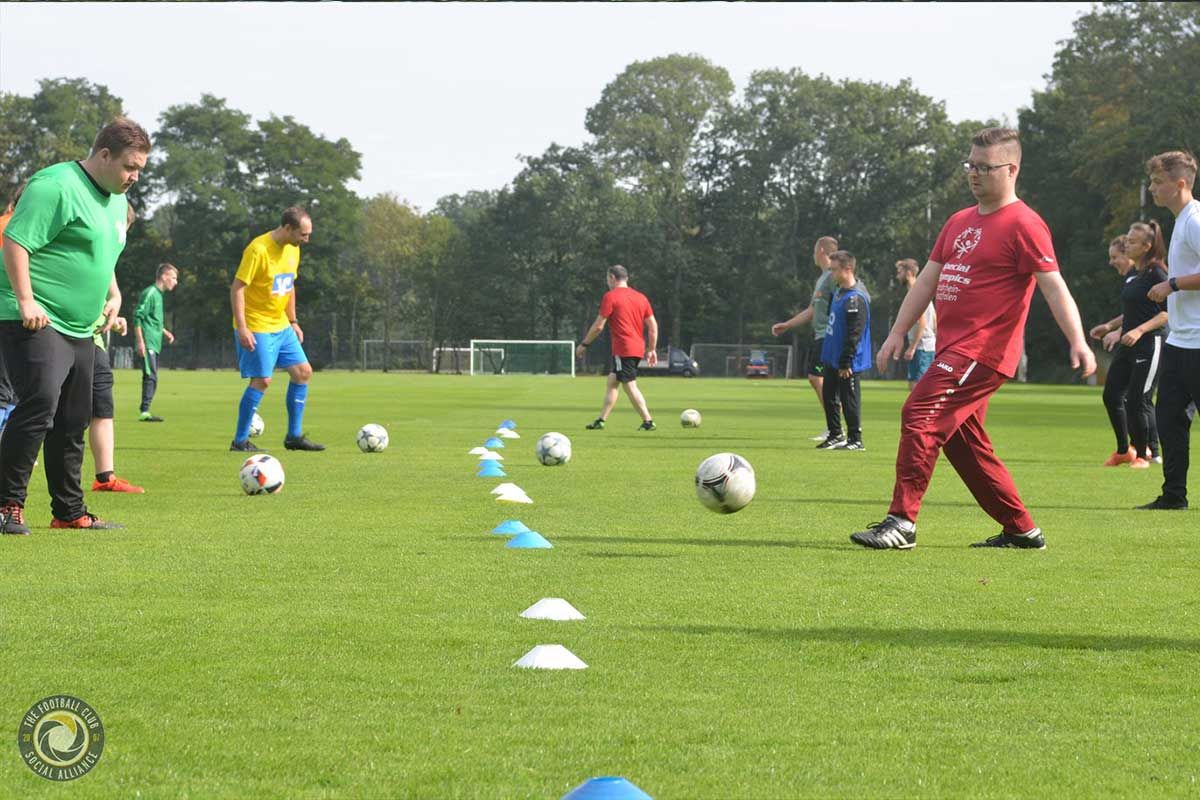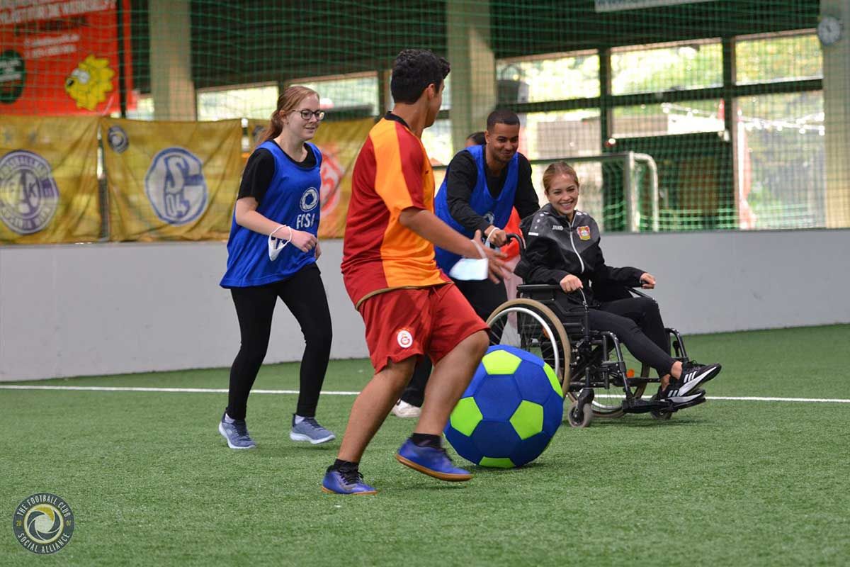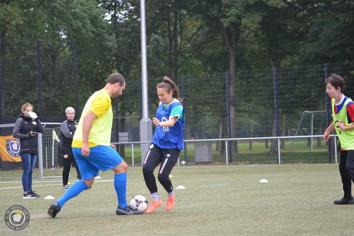 Vom 19. bis 25. September nahmen Inga und Jan von den Ibbenbürener Kickers an der Tandem Young Coach-Ausbildung der Football Club Social Alliance teil, die an der Sportschule Wedau stattfand. Die Besonderheit dieses Ausbildungsprogramms besteht darin, dass jeweils eine Teilnehmerin mit und einer ohne Beeinträchtigung ein Tandem bilden und gemeinsam an der Ausbildung teilnehmen. Diese Schulung wird von der "Football Club Social Alliance," einer Allianz europäischer Profifußballclubs, organisiert und von Expertinnen im Handicap-Fußball geleitet.