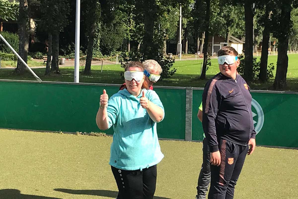 Die Schulung war intensiv und beinhaltete nicht nur theoretische Grundlagen, sondern auch praktische Erfahrungen. Die Teilnehmer*innen konnten sich in die Lage von Menschen mit unterschiedlichen Beeinträchtigungen versetzen, indem sie Aufgaben wie das Erkunden eines Geländes blind oder im Rollstuhl bewältigten. Inga und Jan erfuhren, wie es sich anfühlt, im Blinden- und Gehörlosenfußball zu spielen.