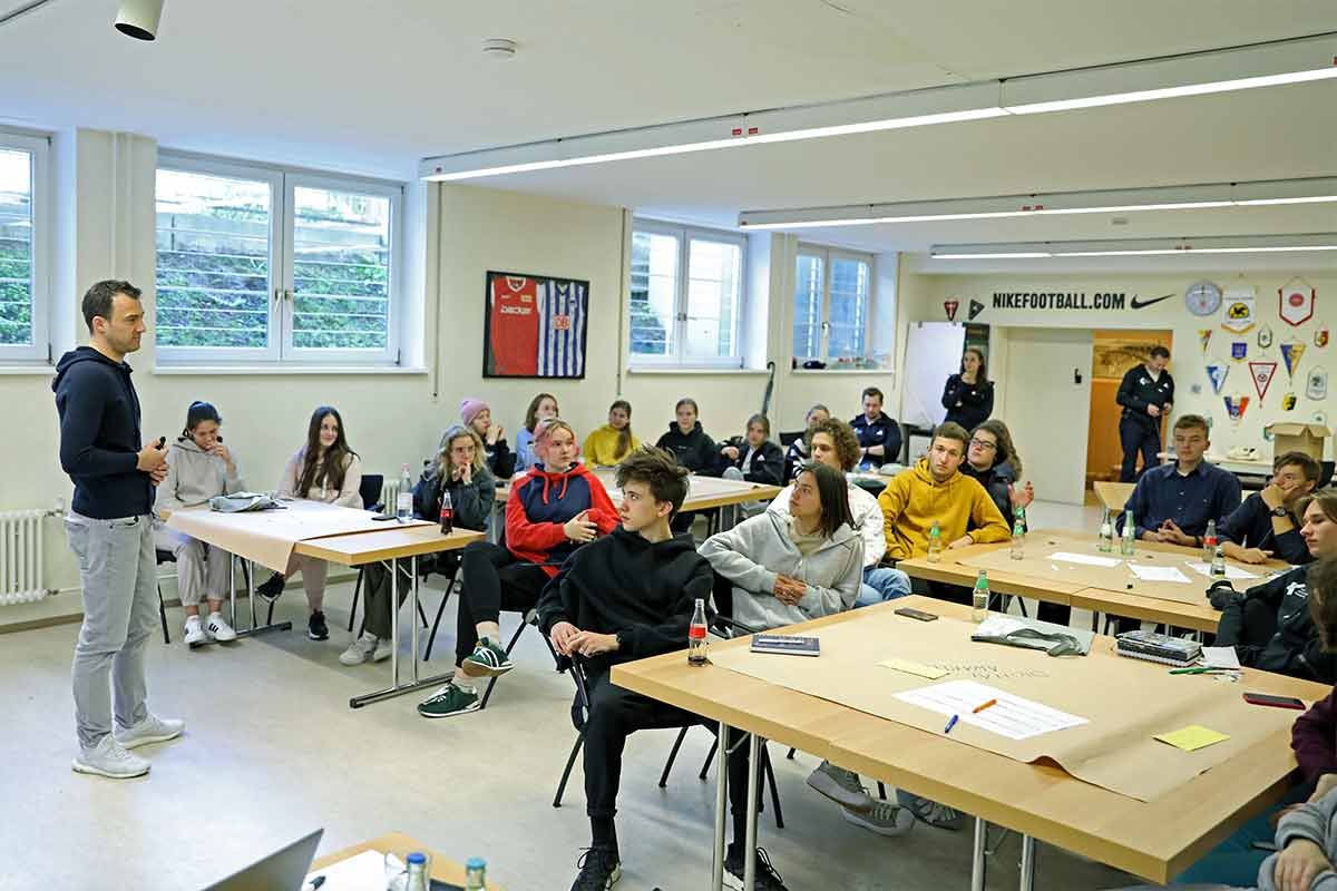 Unser Trainer Timm hatte an der Inter Exchange Academy (IEA) in Berlin teilgenommen. Vom 26. bis 30. September 2022 fand diese Veranstaltung an der Sportschule Wannsee statt. Die IEA wurde gemeinsam von der DFB-Stiftung Egidius Braun und der Klitschko Foundation organisiert und brachte 15 junge Menschen aus Deutschland und der Ukraine zusammen. Das Hauptziel bestand darin, voneinander zu lernen, Freundschaften zu knüpfen, persönliche Fähigkeiten zu erweitern und spannende Projekte gemeinsam umzusetzen.