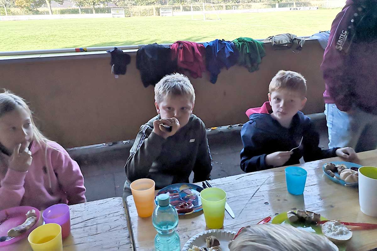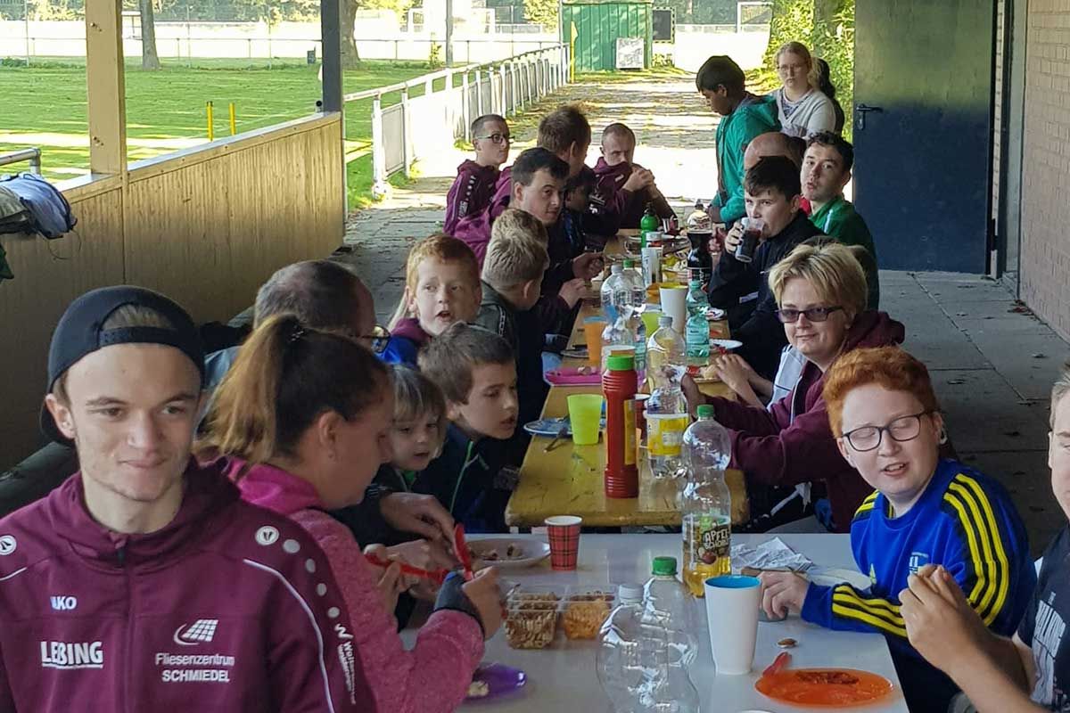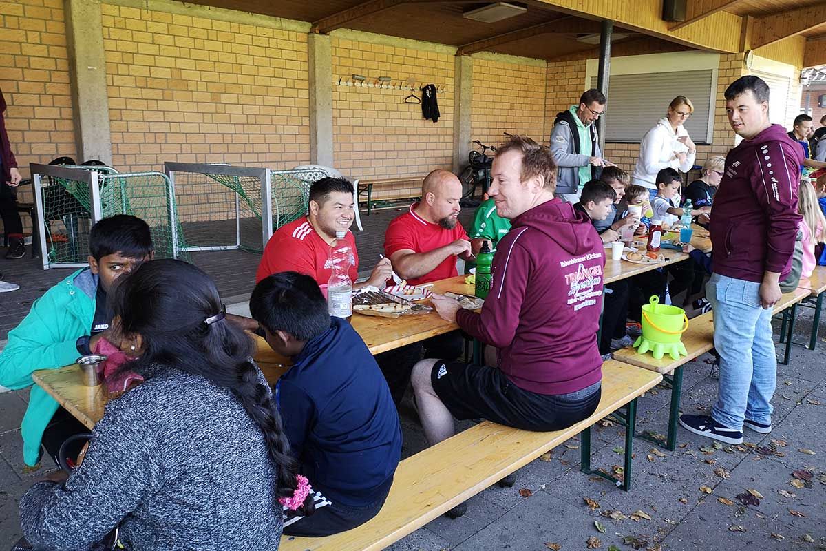 Schon während des Trainings bauten unsere fleißigen Eltern Tische und Bänke auf, um im Anschluss zahlreiche Köstlichkeiten zu servieren, die einem das Wasser im Mund zusammenlaufen ließen. Als der Duft der Bratwürste sich ausbreitete, war an weiteres Training nicht mehr zu denken. :-)