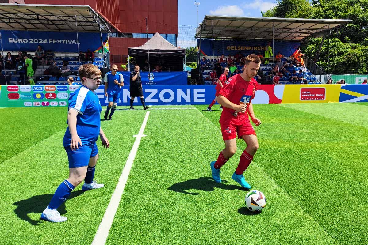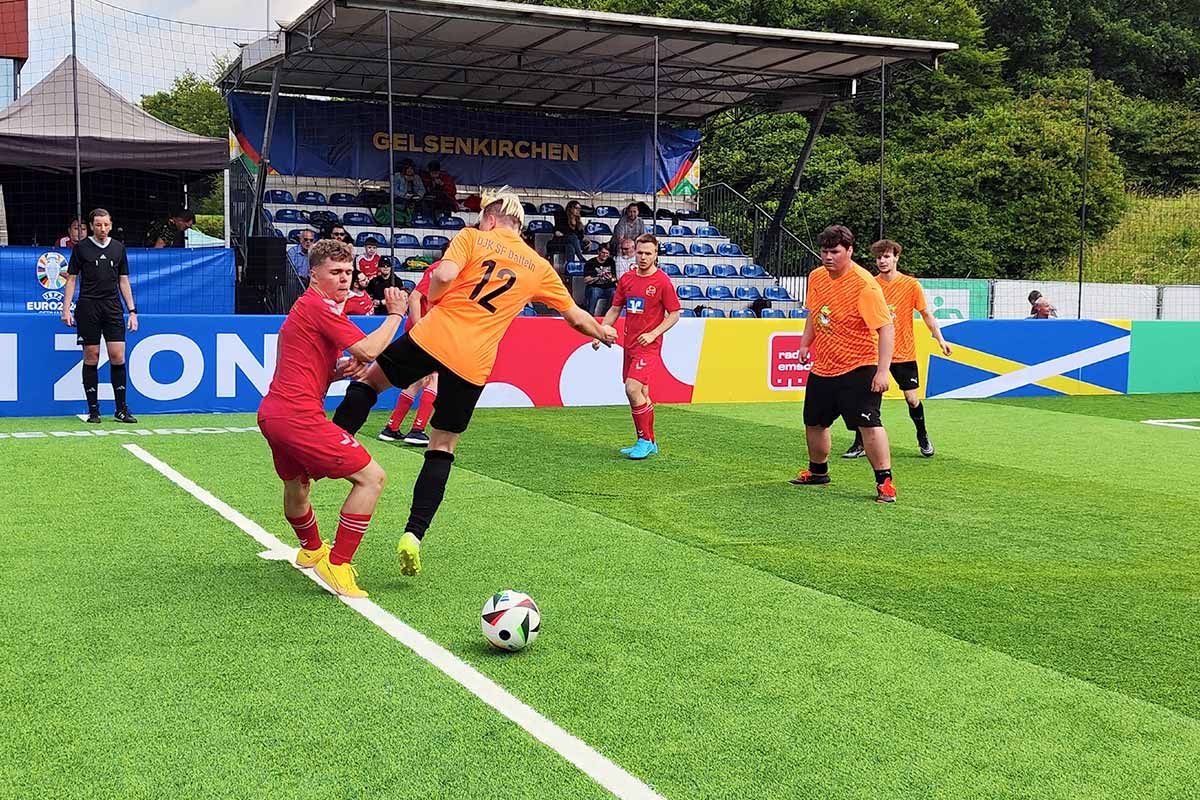 Am zweiten Wochenende der UEFA EURO 2024 fanden in den Fanzonen von Gelsenkirchen und Dortmund die Fußball-Inklusionstage der DFB-Stiftung Sepp Herberger statt. Gemeinsam mit den Ausrichterstädten, dem Fußball- und Leichtathletik-Verband Westfalen (FLVW) und weiteren Partnern wurde ein vielfältiges Programm geboten.