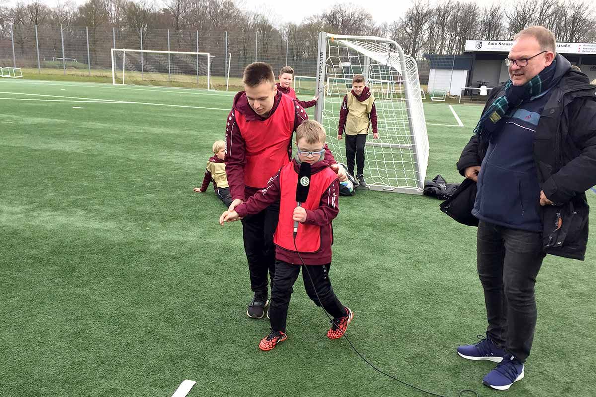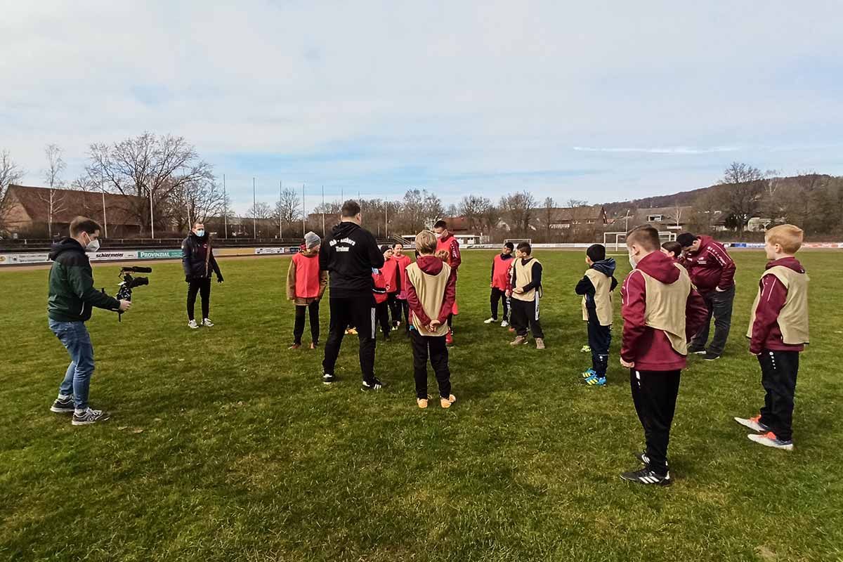 Vorher waren wir alle schon ziemlich aufgeregt. Aufgrund der Auszeichnung mit der Sepp-Herberger-Urkunde 2021 hatte sich ein DFB-Film-Team angekündigt, um Videoaufnahmen für den Imagefilm des Gewinners in der Kategorie Behindertenfußball zu machen.
